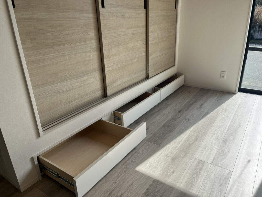 収納スペース。普段はデットスペースになる部分も、無駄なく使いこなすことが出来ます。