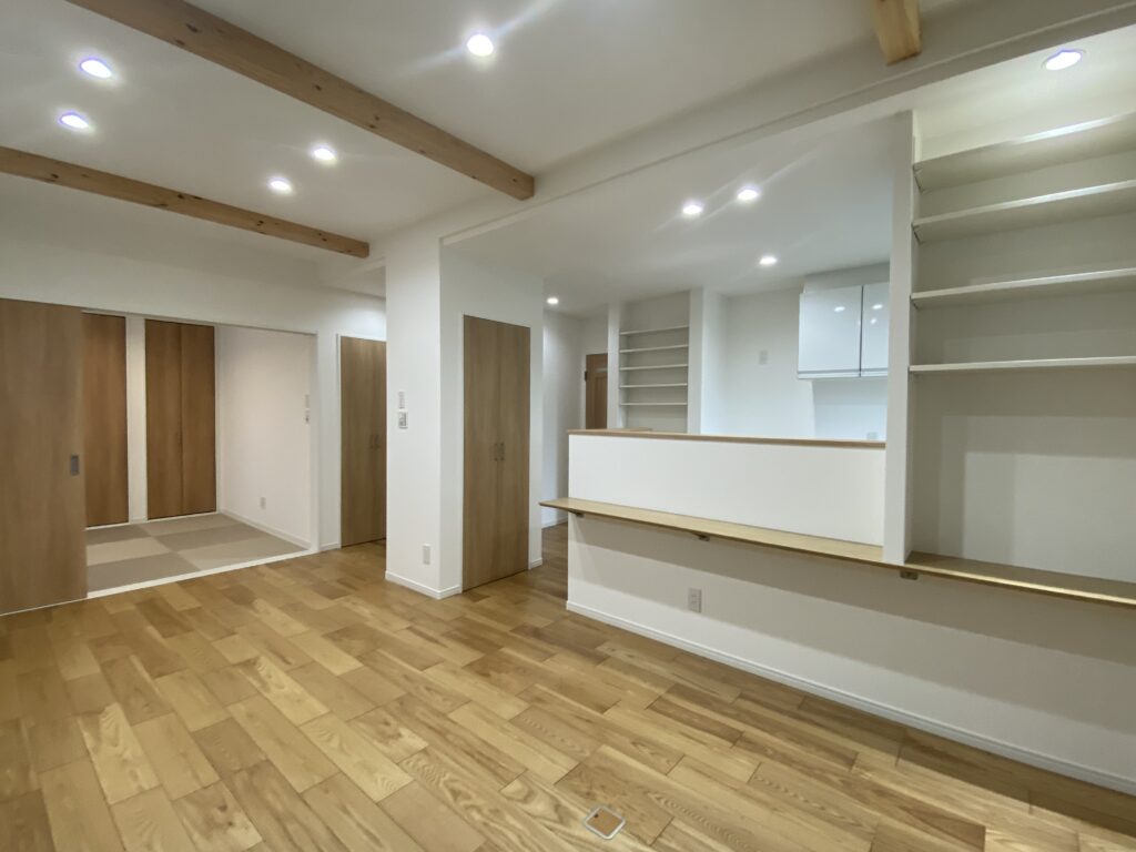 下記のお写真のようにLDKとオープンにつながる小上がり、畳スペースを選ぶ人が増えています。
