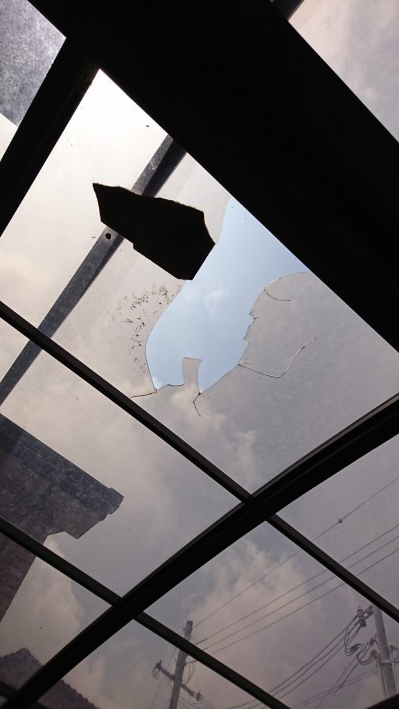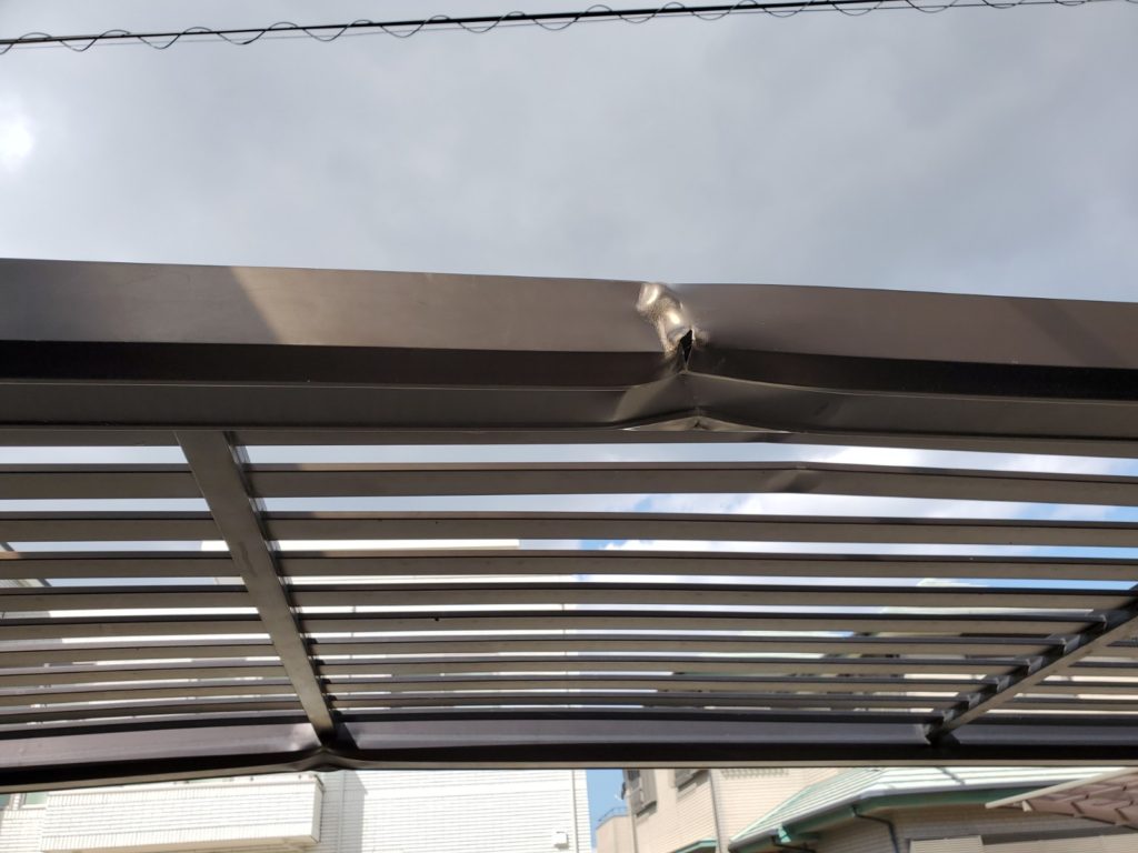 カーポートが隣のお家の瓦によって割れた被害になります。