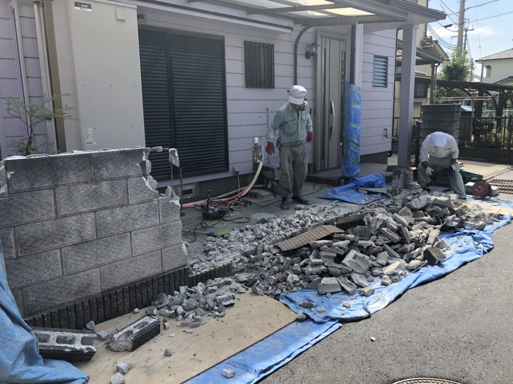 お客様より自転車やバイクを置きたいとの希望があり思い切ってブロック塀を解体しました。