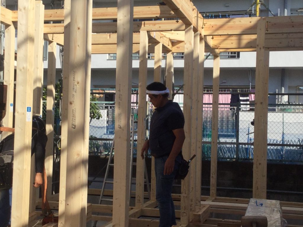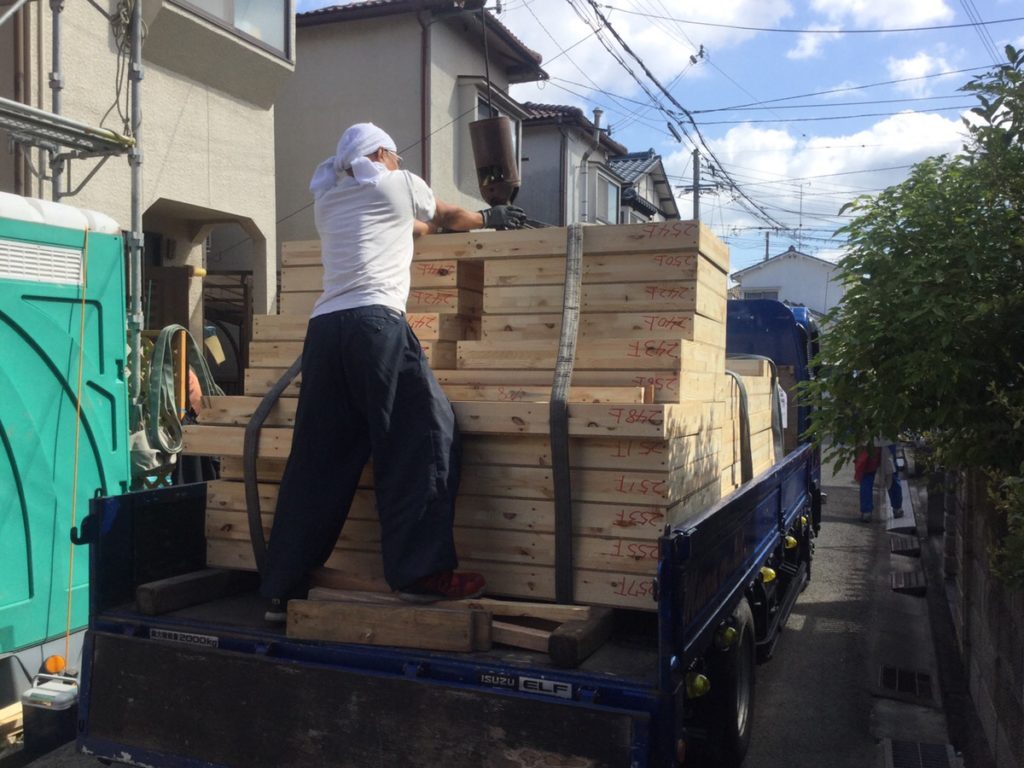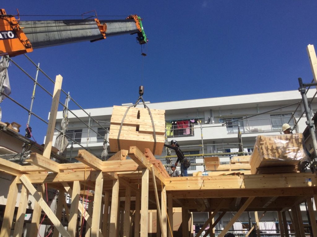事前に、棟梁やクレーン車担当