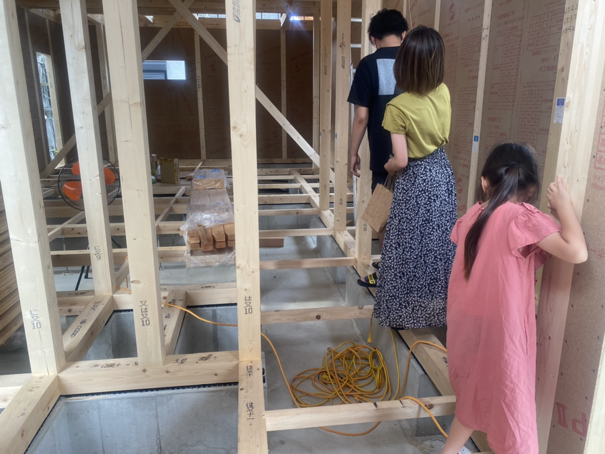 棟上げしたてのお家内をみんなで探検!