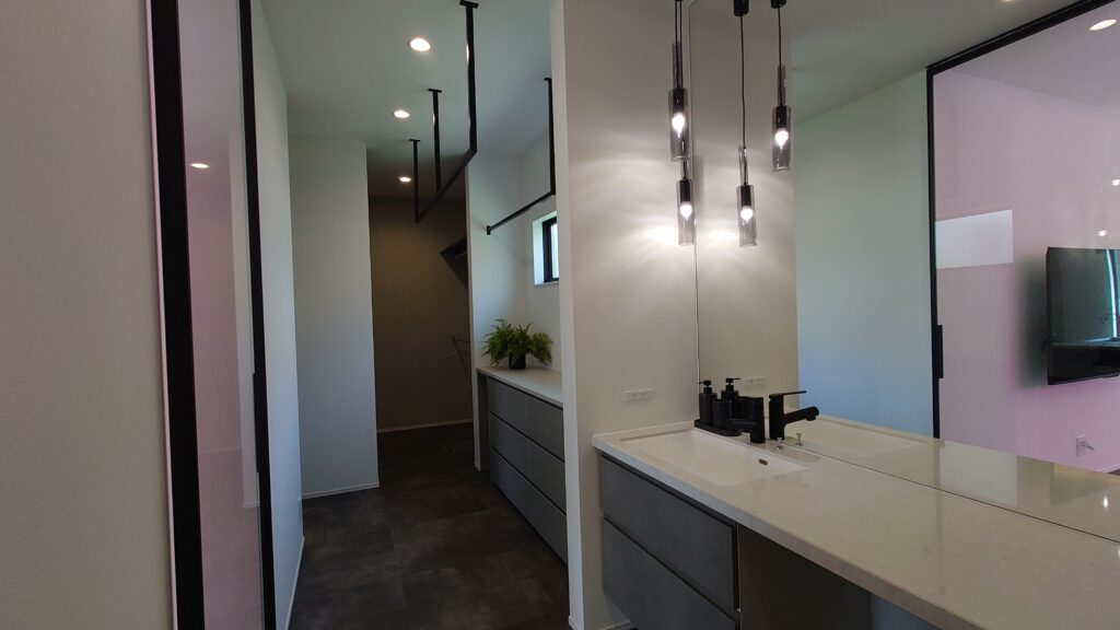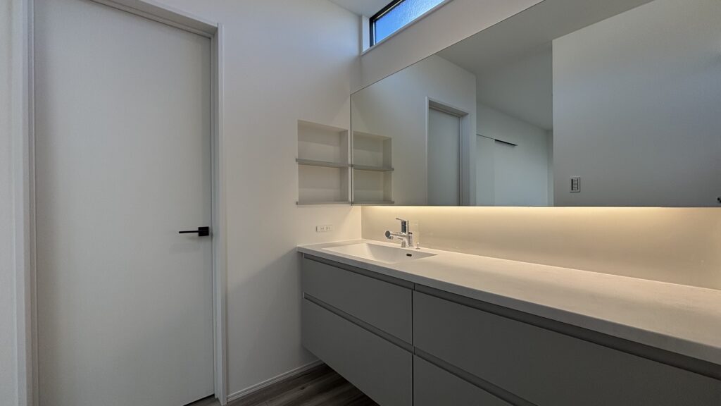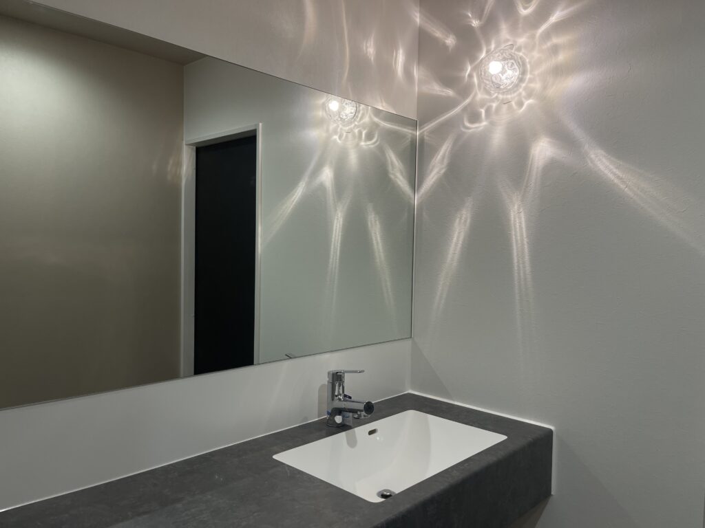 また、カウンターから鏡までの間に間接照明を仕込むことでホテルライクのような落ち着いた雰囲気を演出してくれます!