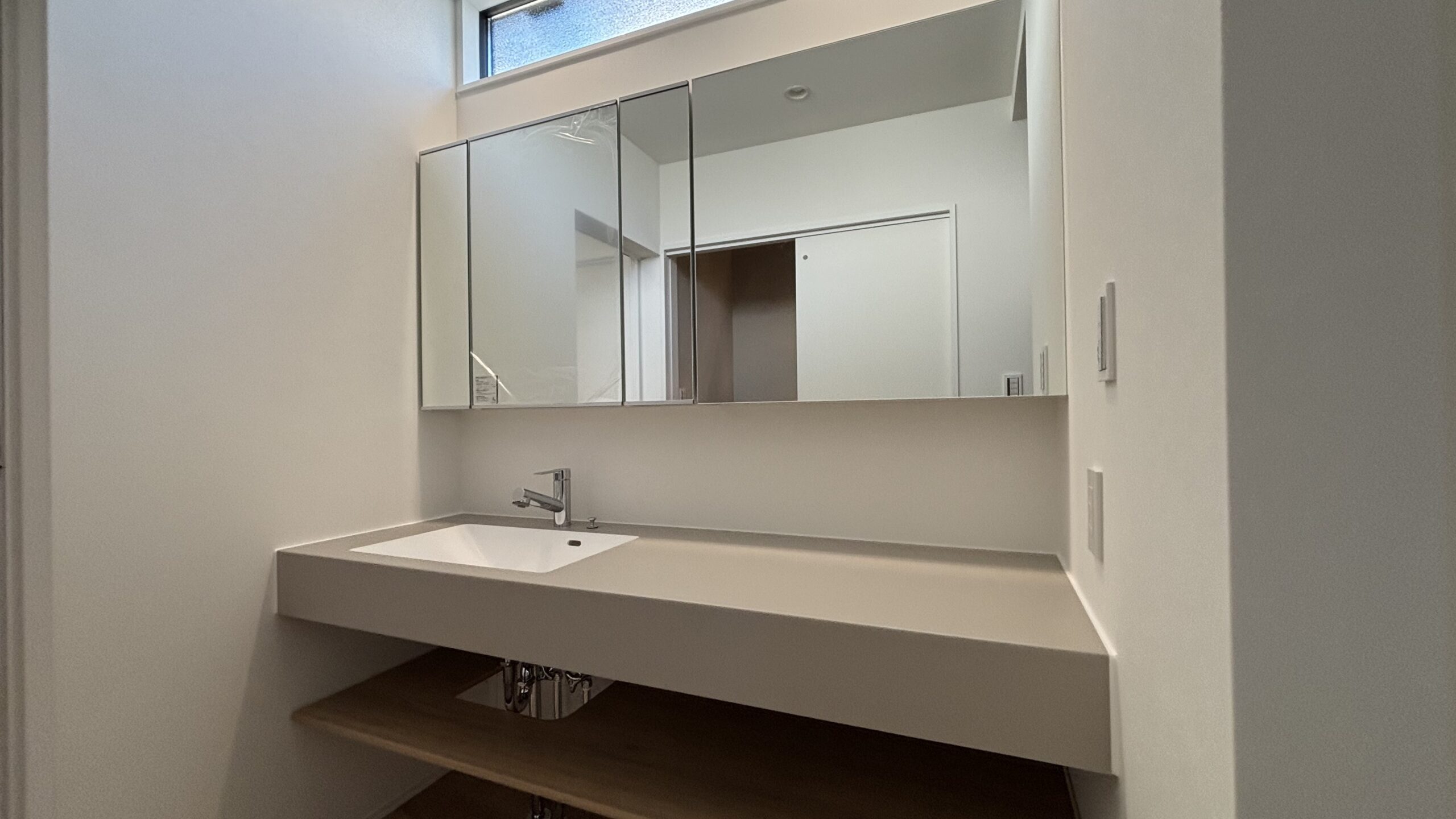 アイカ工業のスマートサニタリーとオーダー鏡の組み合わせです。
