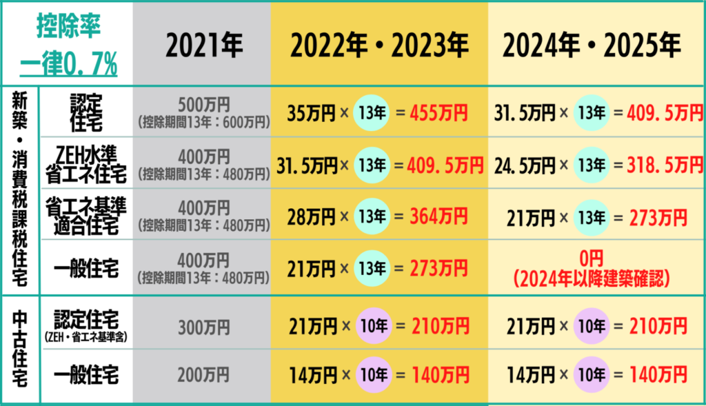 一覧表を見ていただいたらわかるように、2022年度以降の住宅ローン控除適用は、省エネ住宅・ZEH・長期優良住宅認定を取得していただければ