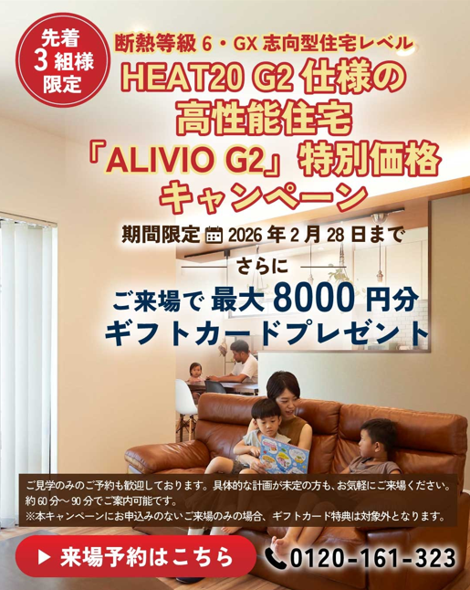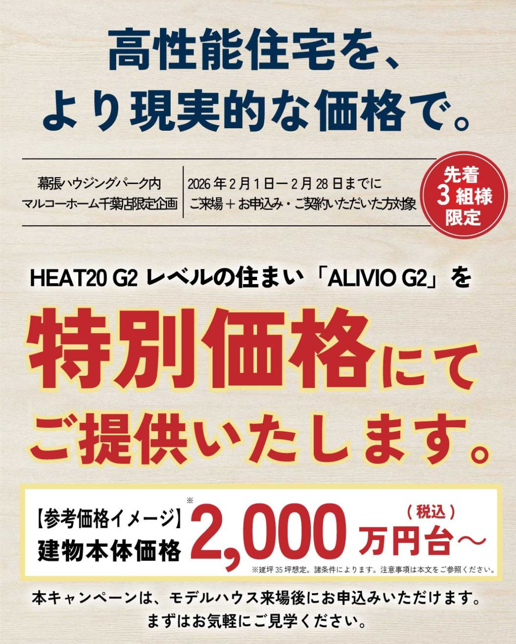 題名にあります通り千葉店では2月中のキャンペーンとしてG2グレード(HEAT20)仕様を特別価格でご提案します!