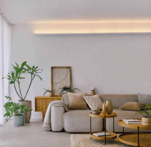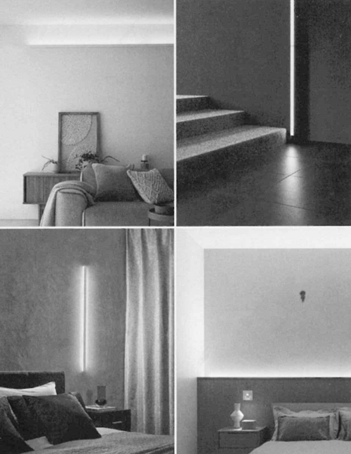 壁に照明器具を直付けしており、造作が無くても、コーブ照明やコーニス照明、タスク照明を空間に取り入れられます。