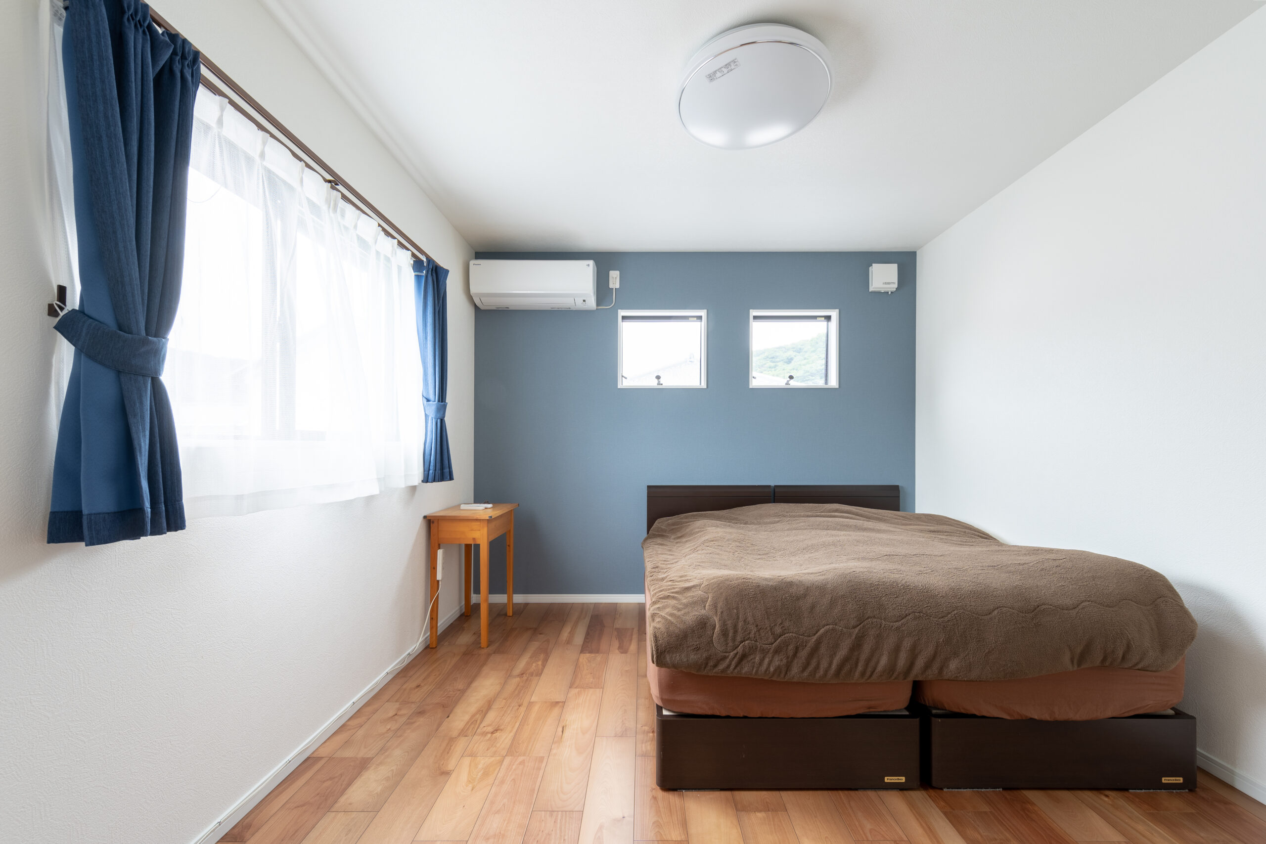 ネービーカラーのアクセントクロスをご採用いただいております。