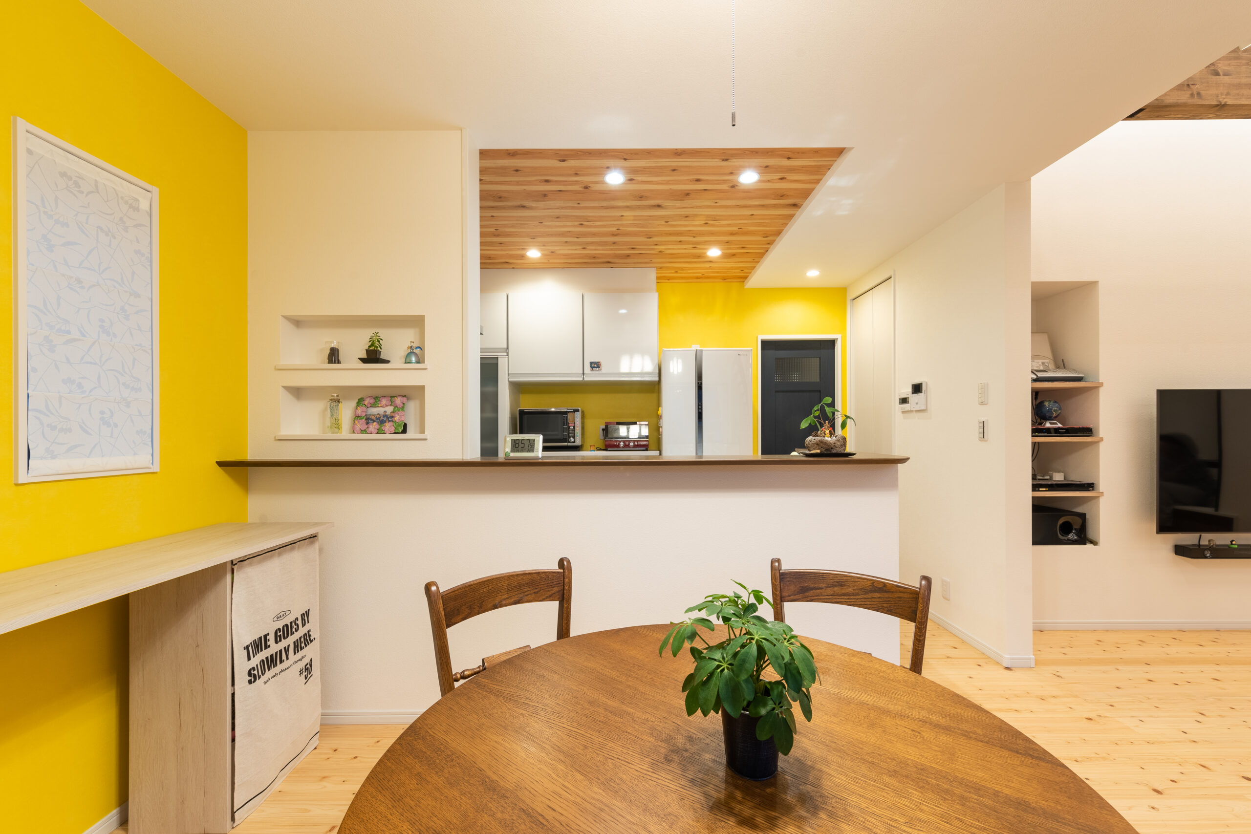 こちらはLDKにキレイなビタミンカラーの『イエロー』のクロスをご採用。