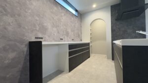 こちらはキッチン奥のパントリーへの入り口をアーチの垂れ壁にしております。