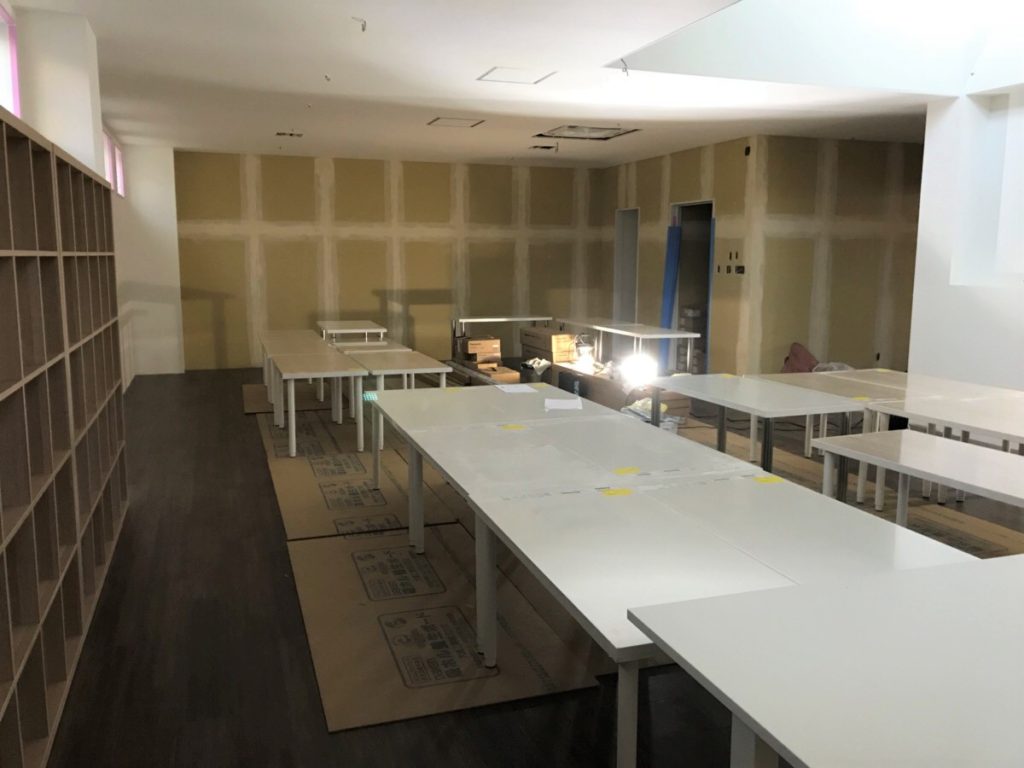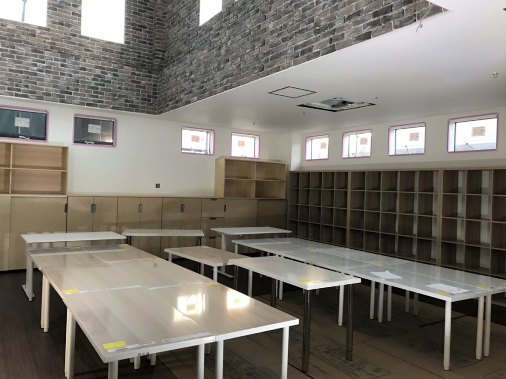 NEW OFFICE❢ STAFF Date:2018/3/31Author: マルコーホーム みなさん、こんにちは☺ 昨日、本社の事務所に置くデスクの組み立てを行いました❢ 先日から、大工さんたちが棚などの家具を組み立ててくれ、完成が近づいております✨ 吹き抜けの部分にはタイルが張られておりとってもおしゃれになっています✨ 新しい事務所でお仕事をするのが楽しみです♡ コーディネーター真砂☘