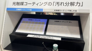 展示会では実際に光を当てて汚れが落ちる実験もあり、改めてその効果を実感しました!