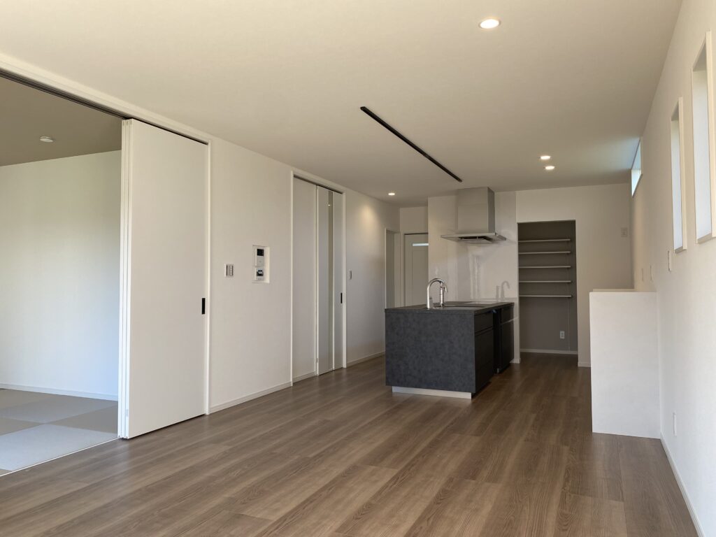 対面キッチンから見た時に部屋全体を見渡すことができ、奥行がかなり広く感じます!