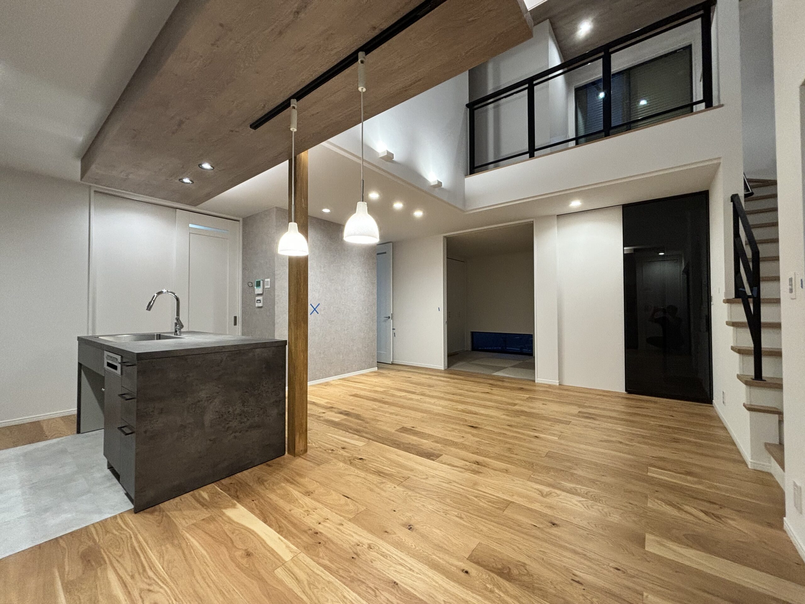 通常天井がある部分を吹抜けや勾配天井にすることで、空間が広く感じることができます。