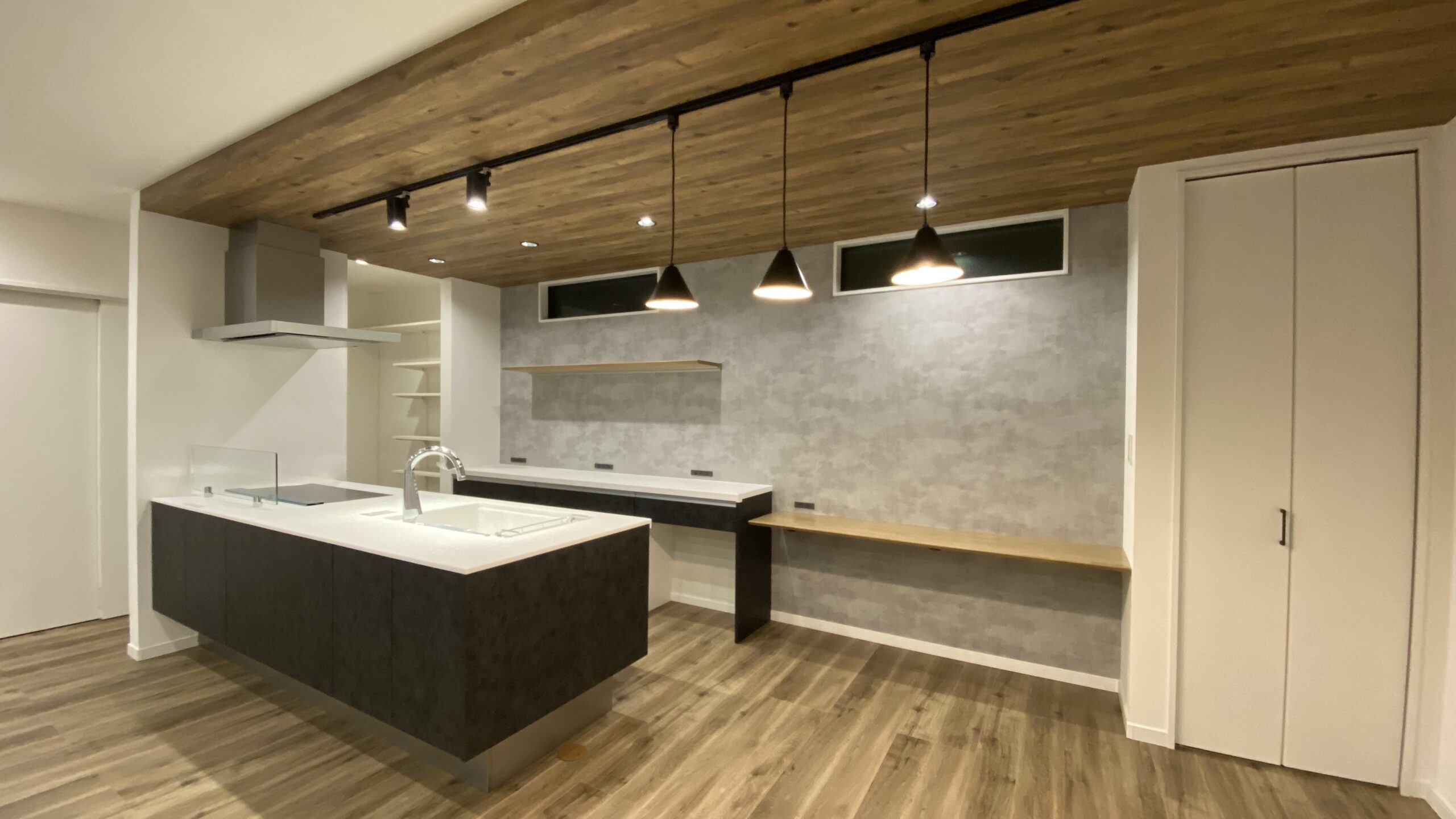 ヴィンテージ感が強く濃い色のキッチンやクロスとの相性が良いフロアになります。