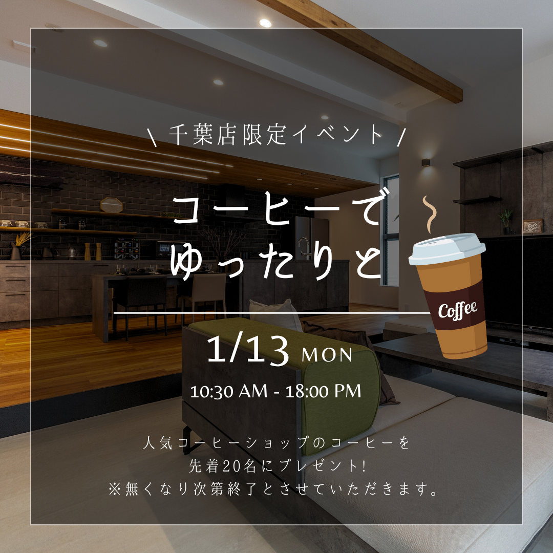 【日時】1月13日㈪ 10時30分~18時 人気コーヒーショップのコーヒーを先着20名様にプレゼントします☕