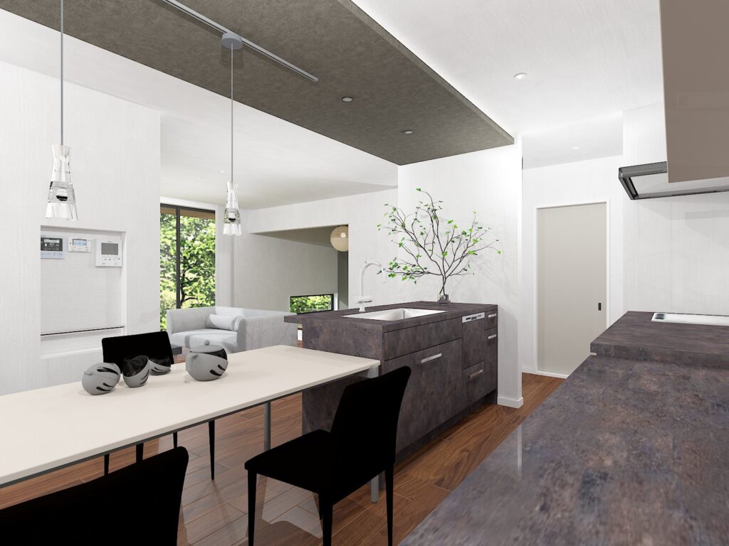 • 📌グラフテクトⅡ型キッチン(メルクリオ柄)&ダイニングテーブルを採用