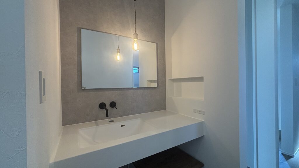 白×グレーをメインカラーに、なるべくシンプルになるように計画しました。その中でも、スイッチやコンセント・内窓枠・アーチ垂れ壁などあまり目立たない所にもこだわりました。計画を進めていく中で、あれもしたしこれもしたいとたくさんの要望が出てきました。その度に担当のアドバイザーさんとコーディネーターさんはメリットとデメリットをきちんと説明し、提案をして下さいました。