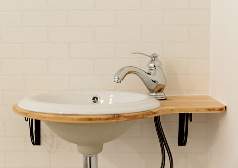 サロンの手洗いカウンター。オシャレで部屋の雰囲気に合っていて、それでいてあまり存在を主張しないデザインを探されたという。